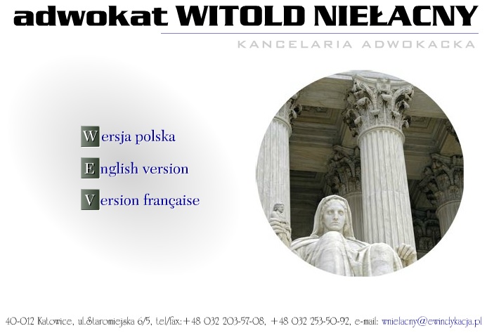 Kancelaria Adwokacka Witolda Niełacnego w Katowicach oferuje: pomoc prawną, obsługę prawną, zastępstwo procesowe, redagowanie umów, windykację wierzytelności, doradztwo podatkowe, orzekanie w sądzie w sprawach, zakładanie przedsiębiorstw